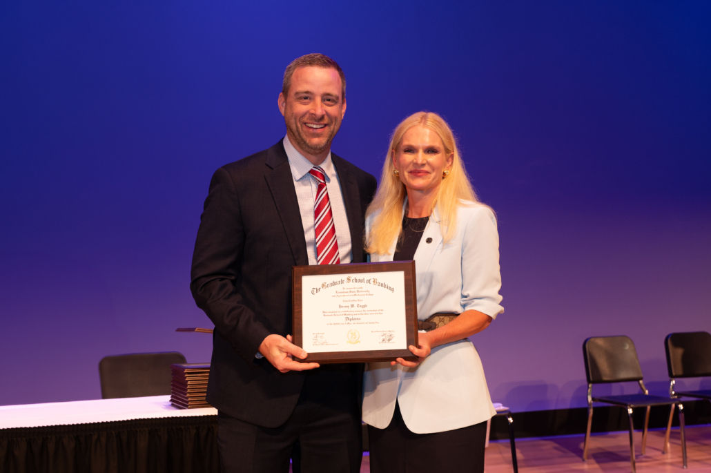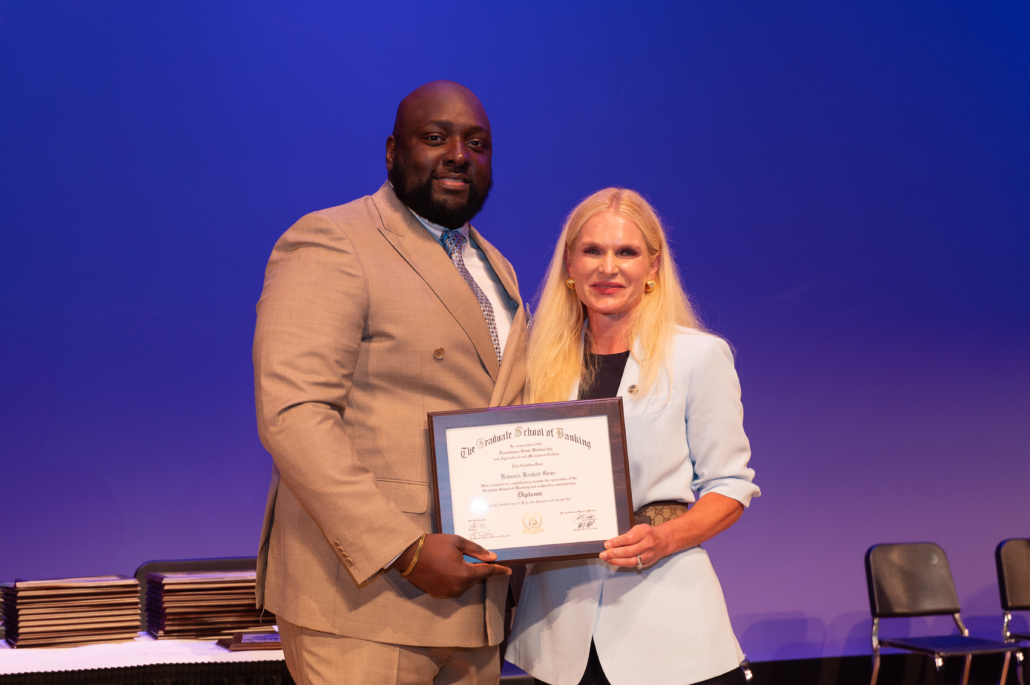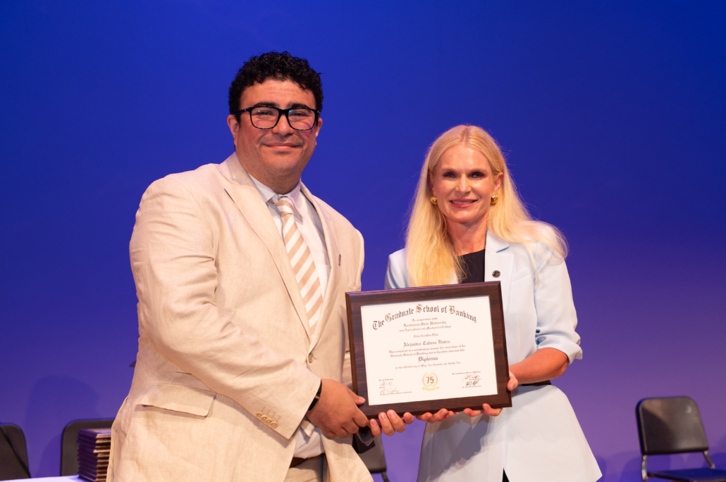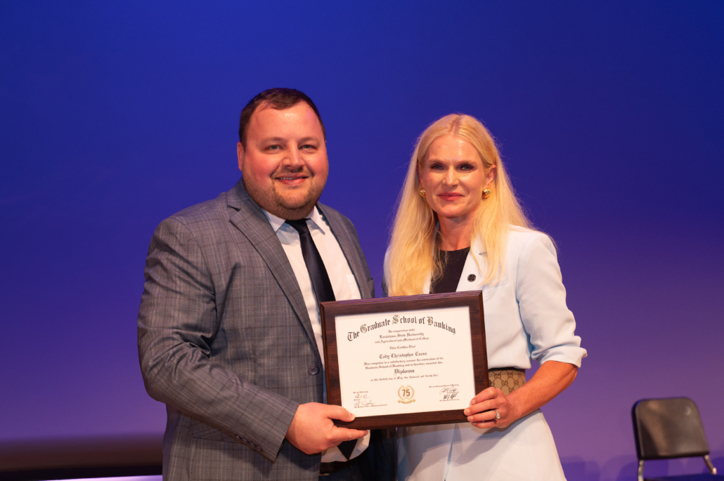 Baton Rouge, LA – On May 30, 2025, the Theater in the LSU Student Union was filled with energy and accomplishment as the Graduate School of Banking at LSU (GSBLSU) conferred diplomas to its 73rd graduating class. This year’s class included 166 graduates, among them 42 women, representing 13 U.S. states and Mexico.